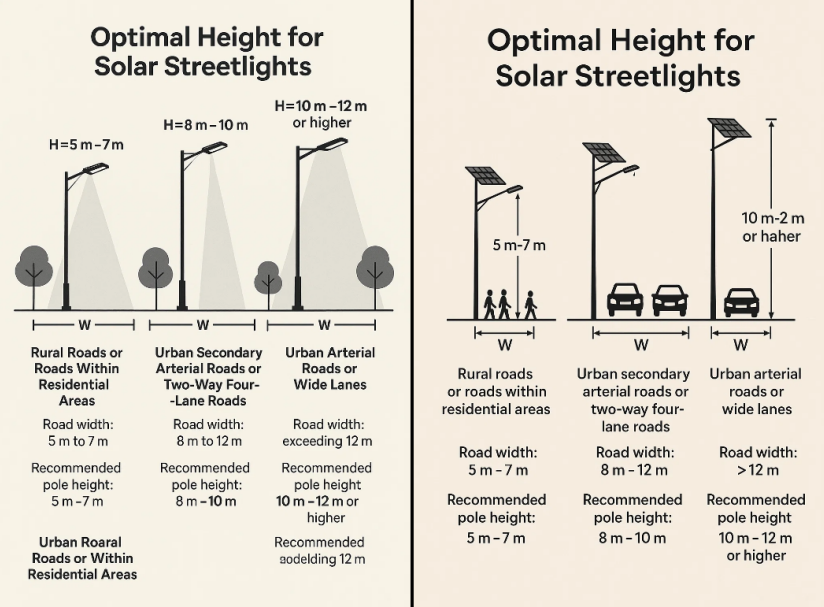 Choosing the height of Solar Street Light is a complex system optimization process that requires consideration of: Engineering Standards, Road Structure, and Economic Benefits.